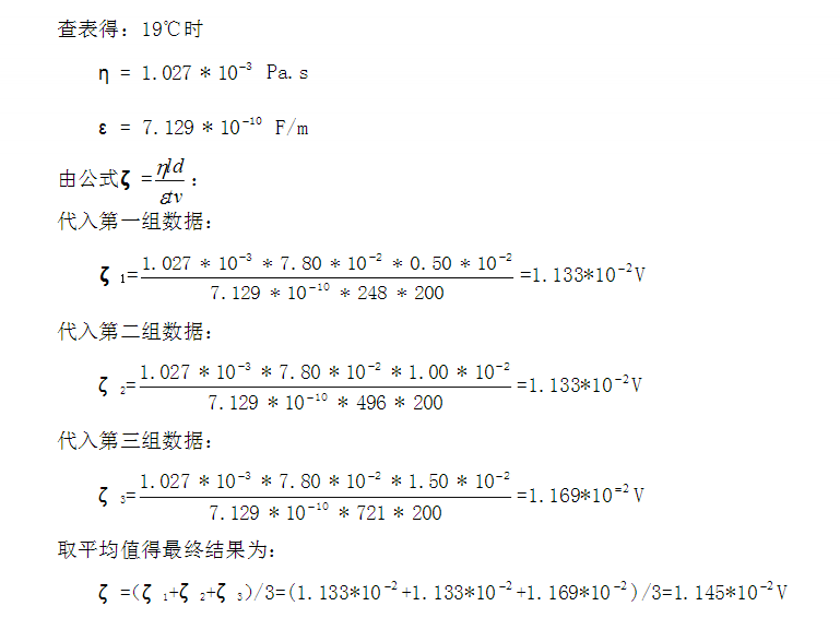 電壓V=200V;室溫T=19℃;L=7.80cm